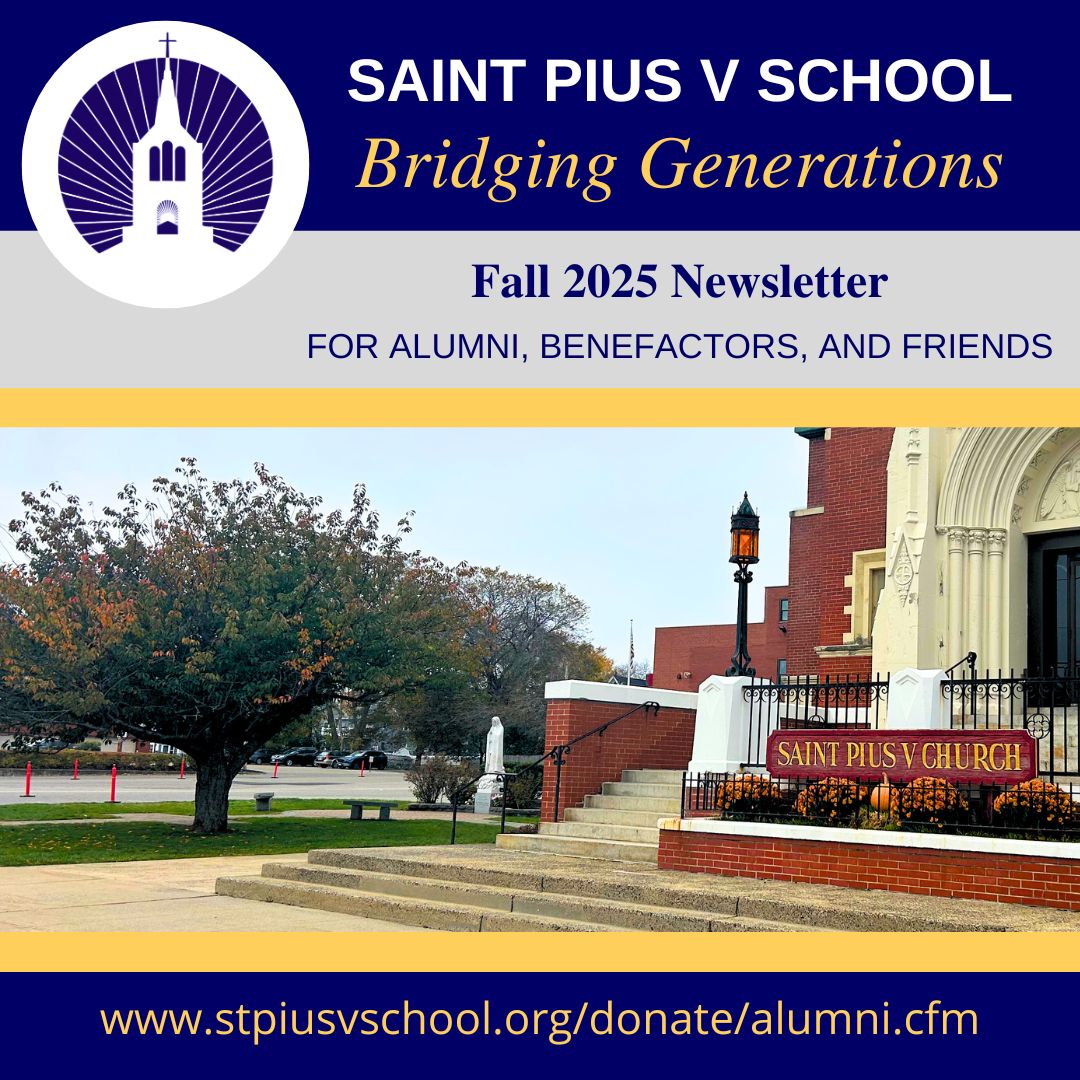 Alumni are an important part of the great legacy at St. Pius V School! We hope you will stay in touch as the great legacy continues. Please complete our CONTACT INFORMATION FORM so we may communicate with you about school updates, reunions, and other news.